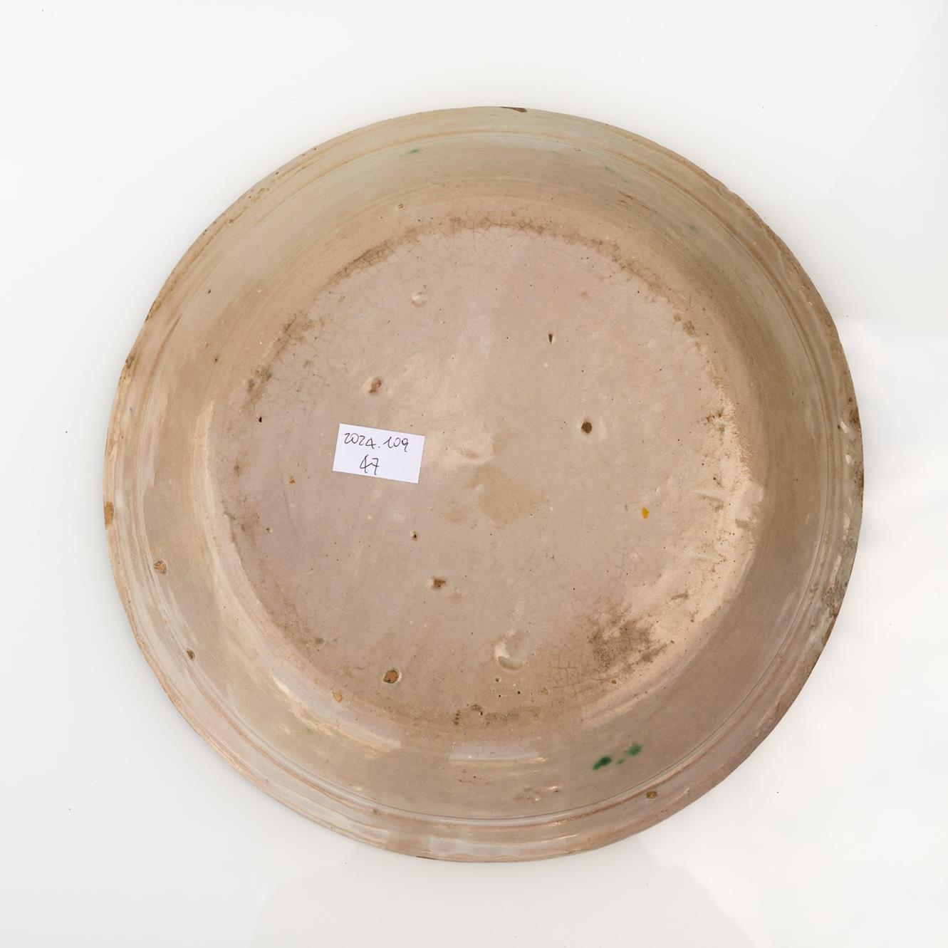 Grande piatto con decoro con colomba a spugnetta nella tesa e una colomba al centro del cavo con ramo d'ulivo Manifattura molisana della seconda metà del XIX secolo