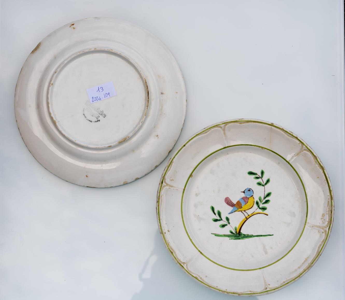 Lot 496 | Coppia di piattini con decoro a uccelli. Manifattura di Gualdo Tadino del XX secolo