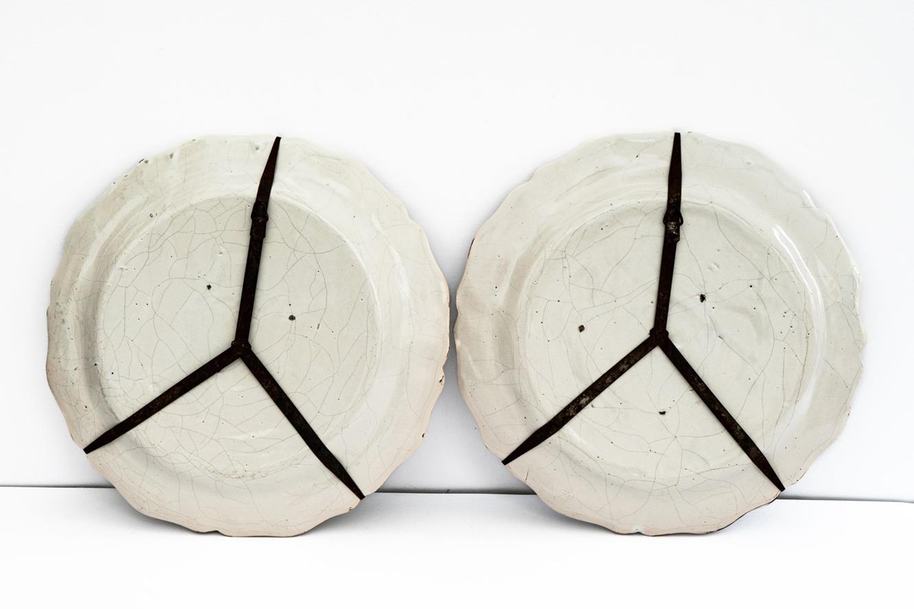 Coppia di piattini con bordo mistilineo decoro alla tesa a fiori e fiore centrale in manganese Manifattura di Cerreto Sannita del XIX secolo