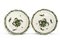 Coppia di piattini con bordo mistilineo decoro alla tesa a fiori e fiore centrale in manganese