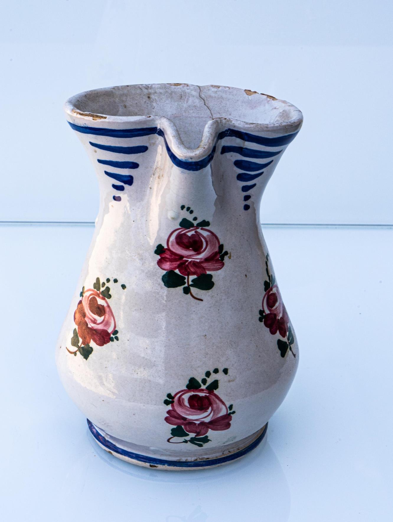 Piccola brocca da esportazione con decoro a roselline. Manifattura di Castelli degli anni Trenta del XX secolo