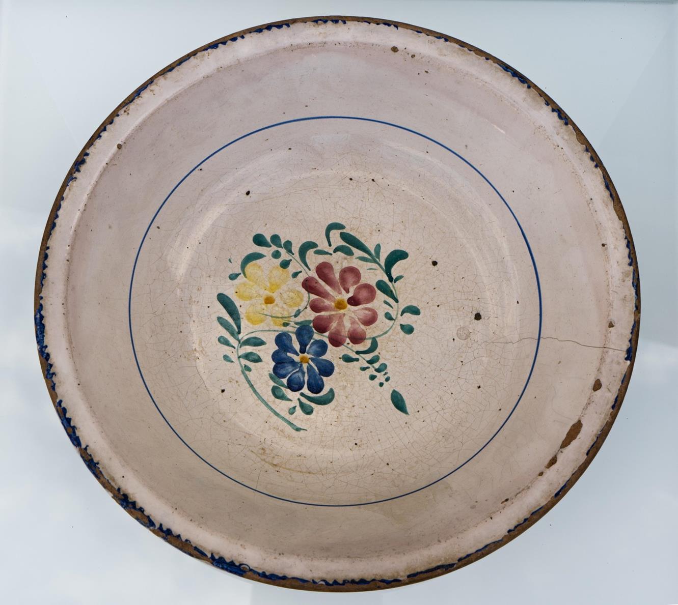 Grande bacile con decoro floreale nel cavetto. Manifattura di Palena della fine del XIX secolo