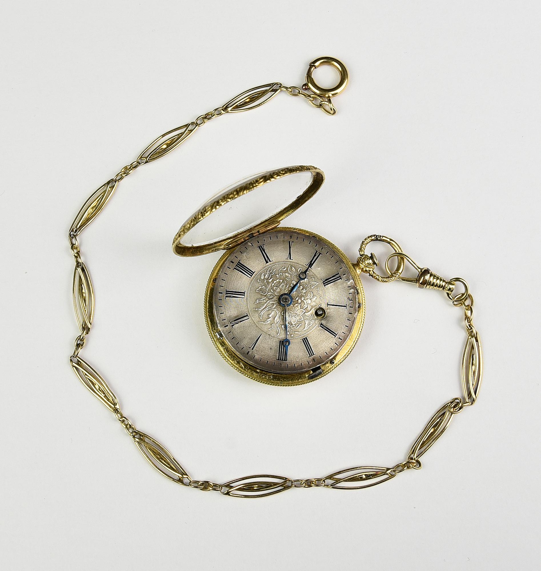 Orologio da tasca Dechoudens con catena, fine 800, oro 18K
