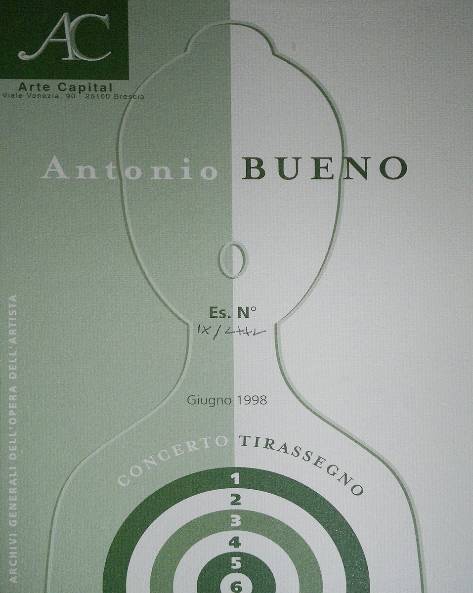 BUENO ANTONIO (1918 - 1985) Concerto Tirassegno. 1998. Collage e acrilico su legno. Cm 70,00 x 90,00. IX/LXXV. Al retro reca il cartiglio degli Archivi dell'opera dell'artista presso Arte Capital, Brescia, con la tiratura. Certificato di autenticità con timbro a secco dell'archivio Bueno, Firenze e firma di Giovanbattista Bianco. Cornice presente