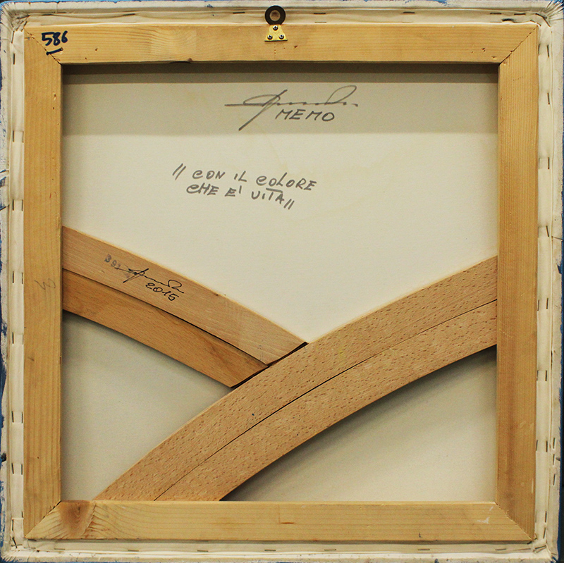 GIUSEPPE AMADIO, "Con il colore che è vita", anni 2000, estroflessione su tela, dim 61x61. Al verso. firma in alto nel centro, titolo nel centro, firma nel centro a sinistra e anno.