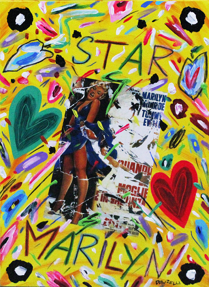 BRUNO DONZELLI, "Star Marilyn", anni 2000, Tecnica mista su tela, dim. 70x50, Al verso: titolo e firma, Al fronte: firmato in basso a destra