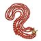 Lunga collana a tre fili composta da sfere di corallo rosso salmone con chiusura in oro giallo a forma di stella marina.