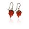 Orecchini in argento e corallo a grappolo montatura a monachella che sostiene un piccolo grappolo di uva stilizzata con corallo mediterraneo due fogliette a decoro.