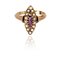 Antico anello a figaro in oro rosso contorno di microperle e ametista centrale taglio marquise.