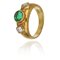 Anello in oro giallo a fascetta bombata al centro smaraldo taglio rotondo di ct. 0 80 ca due diamanti taglio baguette ai lati ct. 0 40 ca.