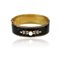 Bracciale semi rigido a fascia realizzato in oro giallo fine manifattura dei primi '900 smalto nero lucido nella parte superiore adornata al centro con motivo floreale piccoli diamanti taglio rosa e una perla.