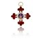 Grande pendente a forma di croce in oro giallo smalti rossi blu e bianchi trasparenti a decoro incisioni guilloche' sottostanti.