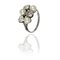 Anello in platino con 3 perle 6 20 mm di diametro cad. e 3 diamanti taglio antico per complessivi ct. 2 60 ca.