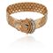 Bracciale a maglia morbida in oro rosso eleganti settori esagonali lucidi sono incatenati a formare un nastro chiuso da una fibbia con inserti in platino e piccoli diamanti lavorazione anni '20.