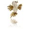 Spilla da cappotto in oro giallo e smalto bianco raffigurante allegro uccellino che cinguetta e sbatte le ali piccolo rubino illumina lo sguardo.