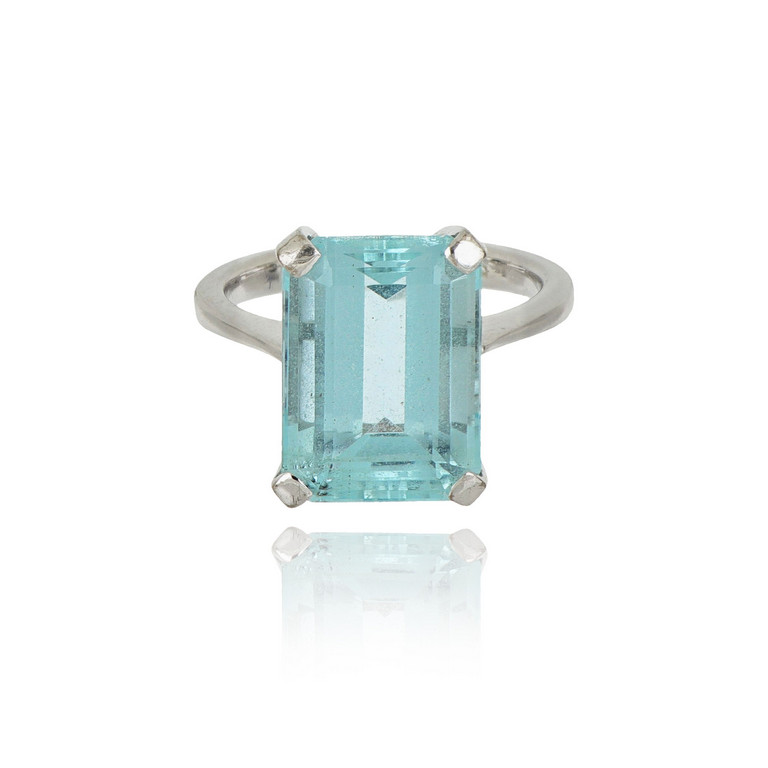 Anello in oro bianco con acquamarina naturale di stimati ct. 7 00 tagliata a smeraldo e montata a solitario su griffe.