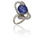 Anello in oro bianco ad intreccio con grande zaffiro centrale di stimati 5 60 ct e diamanti tondi taglio a brillante a decorare la struttura.