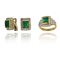 Demi' parure in oro giallo e bianco composta di orecchini e anello a fascia squadrati al centro 3 smeraldi taglio cabochon rettangolari di stimati ct. 7 00 diamanti taglio carre' sul gambo e a contorno per stimati ct. 3 00.
