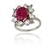 Anello in oro bianco di forma quadrata al centro rubino naturale taglio ovale di probabile origine Birmana non riscaldato ct. 3 82 diamanti taglio brillante e navette per complessivi stimati ct. 1 50.