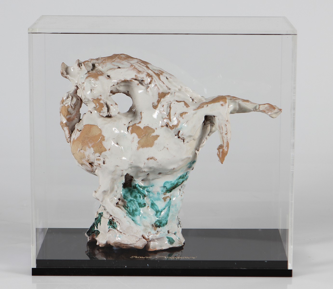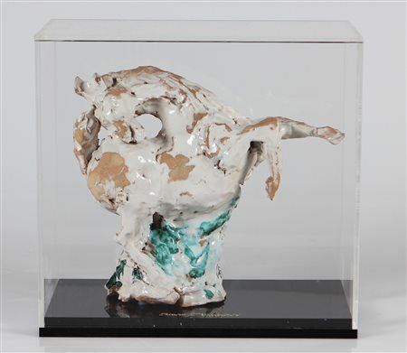 MAGGIONI PIERO (1931 - 1995) Cavallo. Ceramica. Cm 26,00 x 24,50. Firma alla base della ceramica. Opera contenuta in teca di plexiglass. Cornice presente