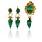 Orecchini e spilla con pendenti in parure fine lavorazione in oro giallo con filigrana pendenti e medaglioni in malachite a formare anfore con lunghi manici.