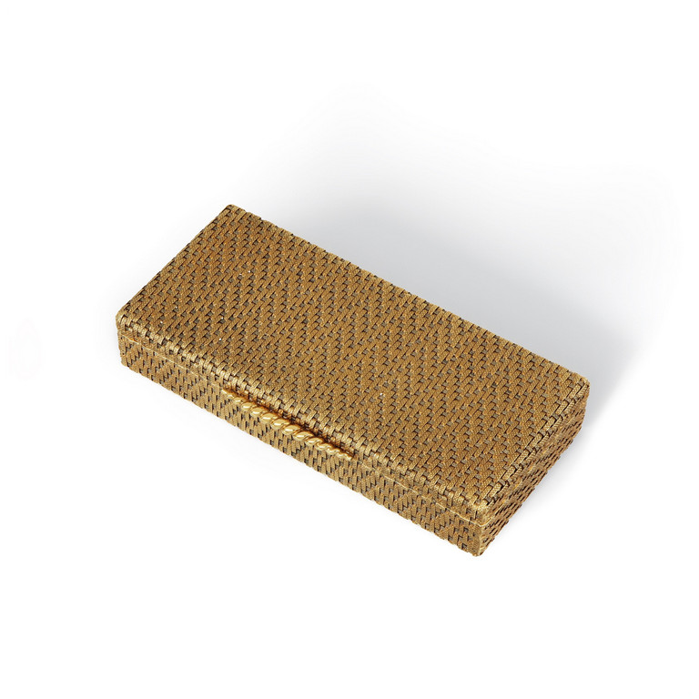 CUSI Scatola porta sigarette in oro a due colori giallo e bianco lavorazione a maglia intrecciato a cestino.