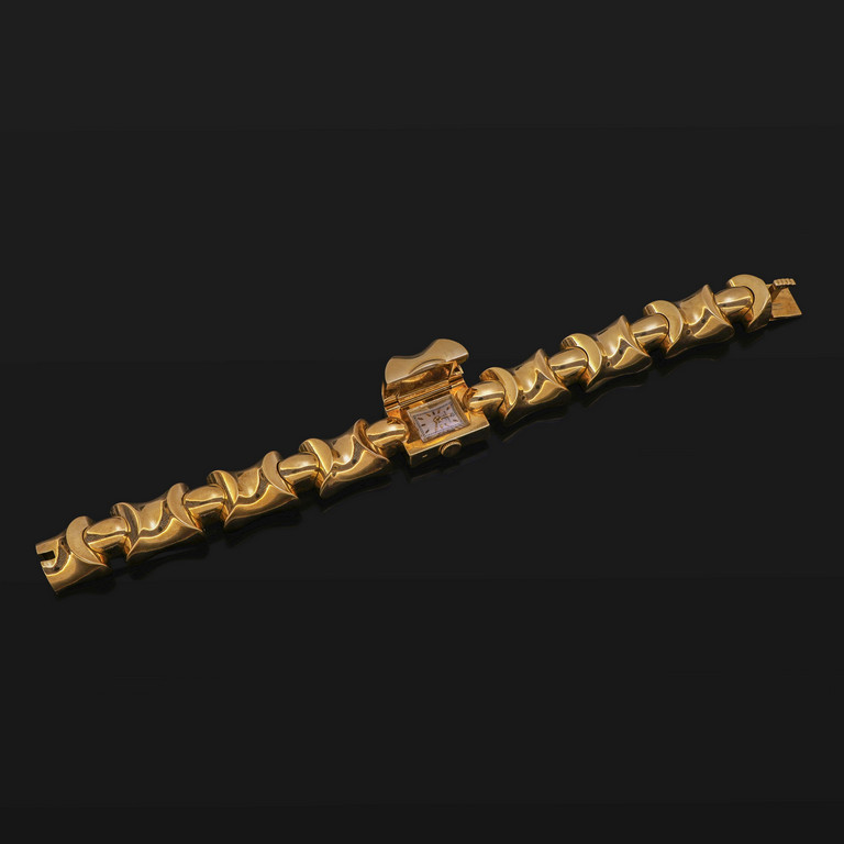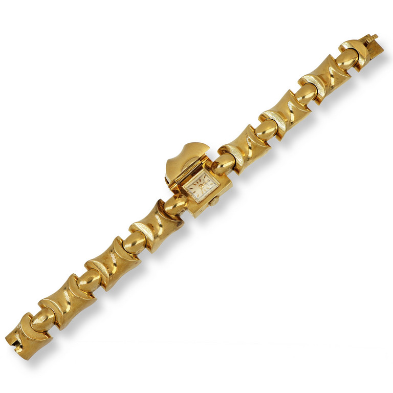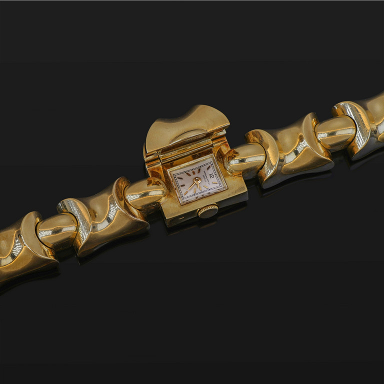 Patek Philippe raro orologio gioiello ref.2125 il bracciale in perfette condizioni a forma bombata nasconde nella parte centrale l'orologio finissima manifattura del movimento a carica manuale quadrante indelebile con indici a bastone.