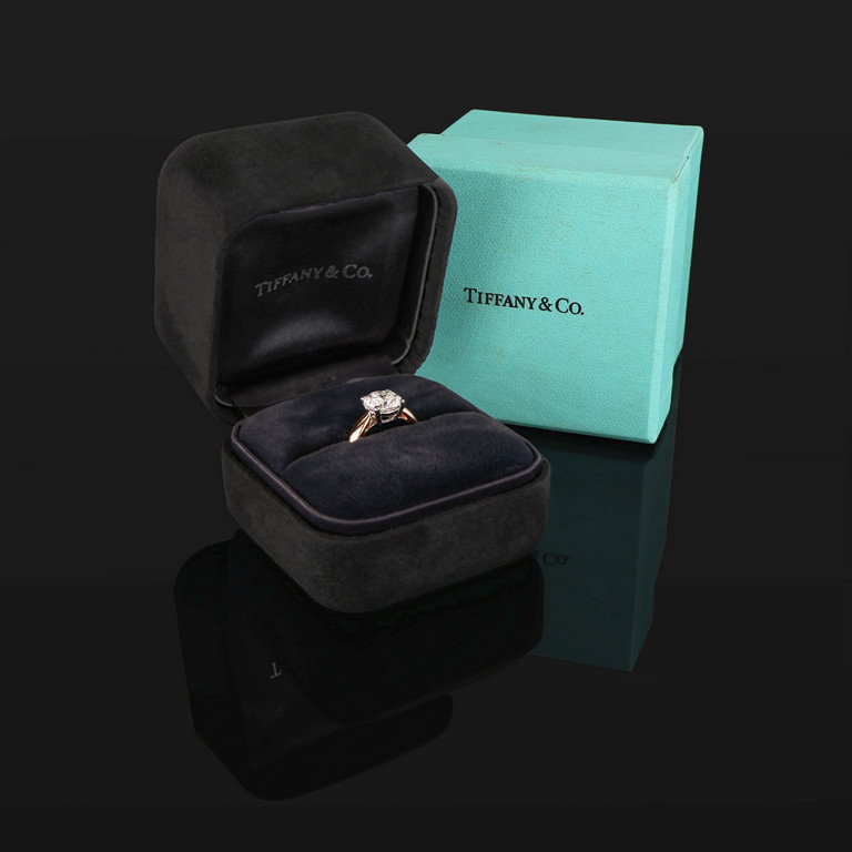 Accompagnato da doppio certificato GIA e Tiffany che ne attestano il colore E e il massimo grado di purezza interna (IF) Il diamante inoltre è tagliato triplo excellent e non presenta alcuna fluorescenza.