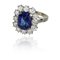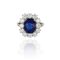 Anello in oro bianco a contorno con zaffiro di forma a cuscino french cut di stimati 6 50 ct.