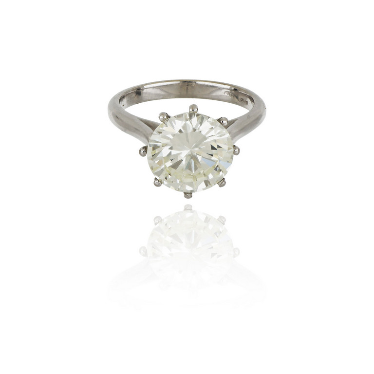 Anello solitario in oro bianco con diamante di forma rotonda taglio a brillante di 4 70 ct.