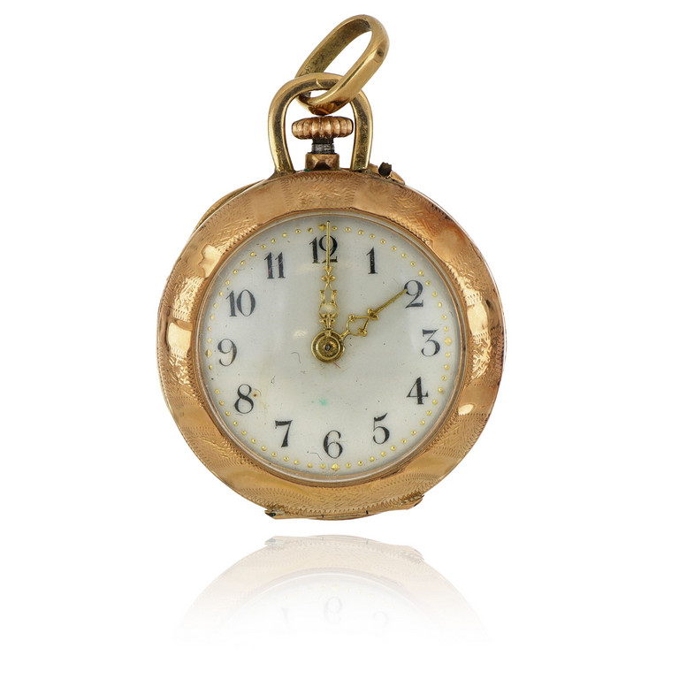 Orologio a cipolla per signora in oro rosa con controcassa in metallo.