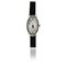 ALTUS Geneve orologio da donna in oro bianco anni 30 movimento meccanico a carica manuale forma ad elisse indici arabi cassa incisa ed impreziosita da pietre verdi (paste vitree) cinturino in raso di seta e fibbia in metallo.
