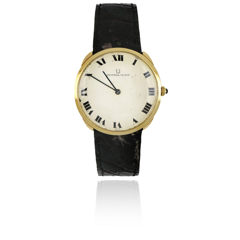 Universal Geneve orologio da uomo in oro giallo con cinturino in pelle fibbia non originale.