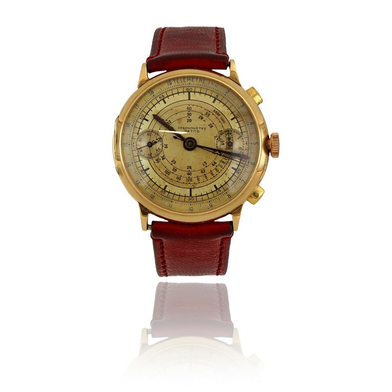 Aetos Cronomètre orologio da uomo in oro giallo con cinturino in pelle e fibbia originale mancante.
