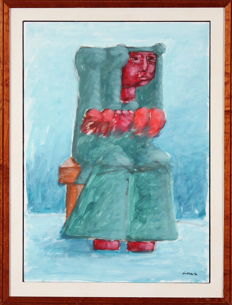BATTAGLIA XANTE (n. 1943) Figura arcaica. Olio su carta. Cm 70,00 x 50,00....