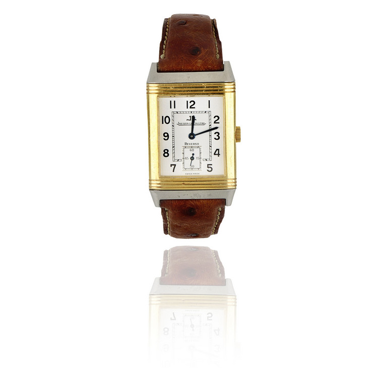 Jaegher LeCoultre orologio da uomo modello Reverso in acciaio e oro giallo cinturino in pelle con chiusura deploiante originale in acciaio ref. 2016917.
