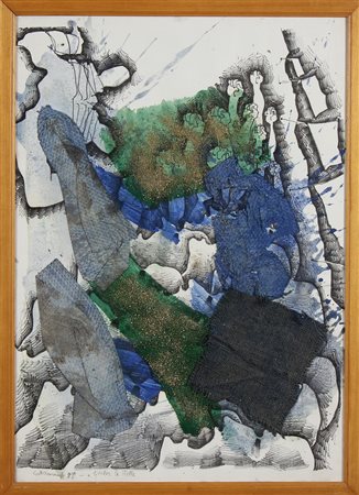 SCHIAVOCAMPO PAOLO (n. 1924) A rivelar le stelle. 1989. Tecnica mista su carta. Cm 50,00 x 70,00. Firna e titolo in basso a destra. Cornice presente