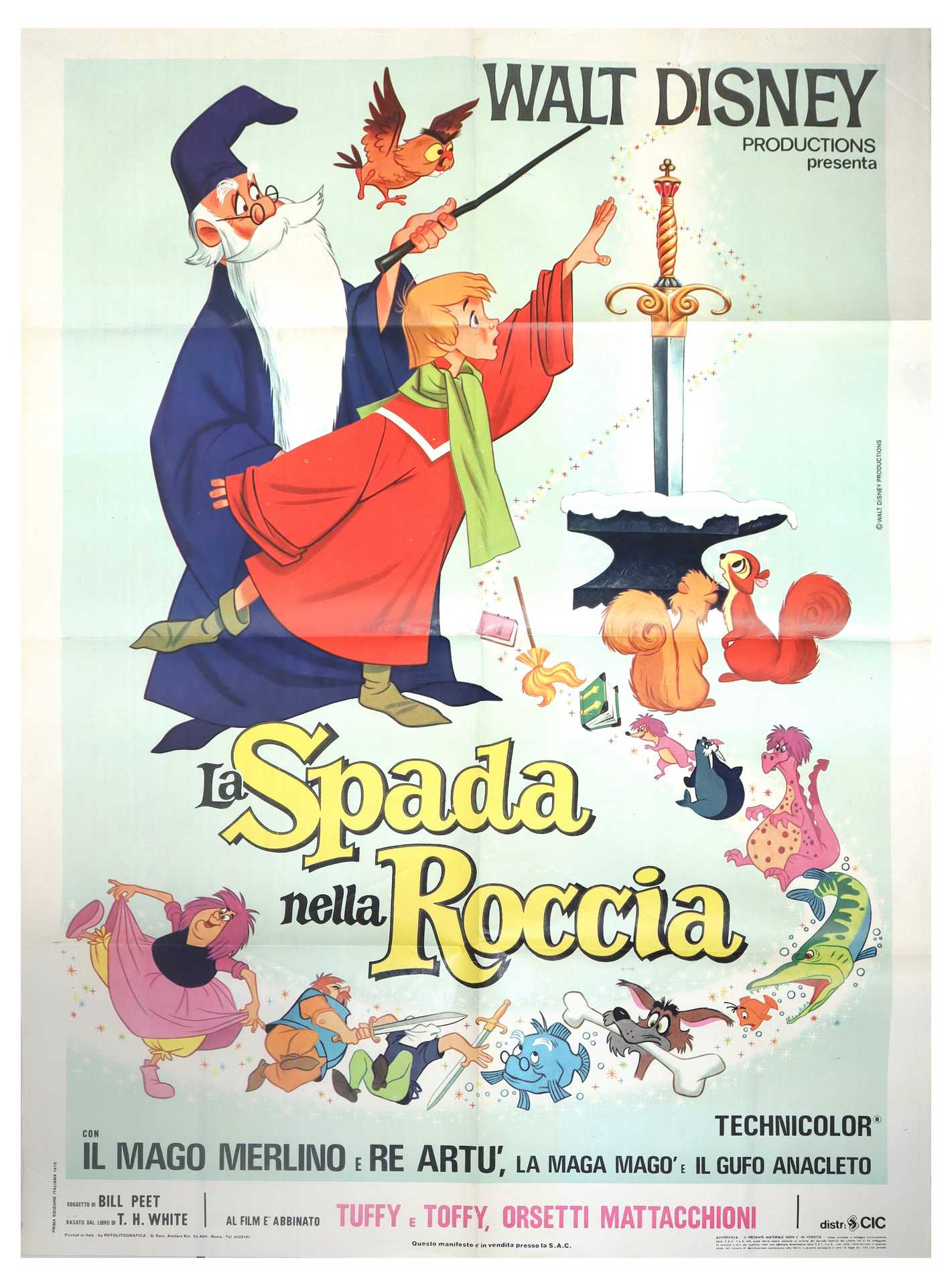 Manifesto cinema due fogli ''La spada nella roccia'', 1973 cm 140x100 Printed in Italy by Rotolitografica - Roma, normali segni d'uso, presente nastro sul retroPrinted in Italy by Rotolitografica - Roma, normali segni d'uso, presente nastro sul retro