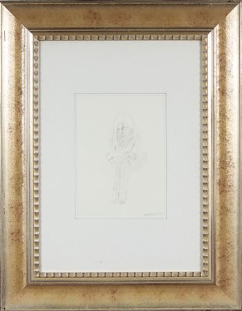MC GARRELL JAMES (n. 1930) Figura seduta. 1965. Matita su carta. Cm 25,50 x 36,00. Firma e anno in basso a destra. Certificato di garanzia e autenticità a opera di Meeting Art Casa D'Aste s.p.a., Vercelli.