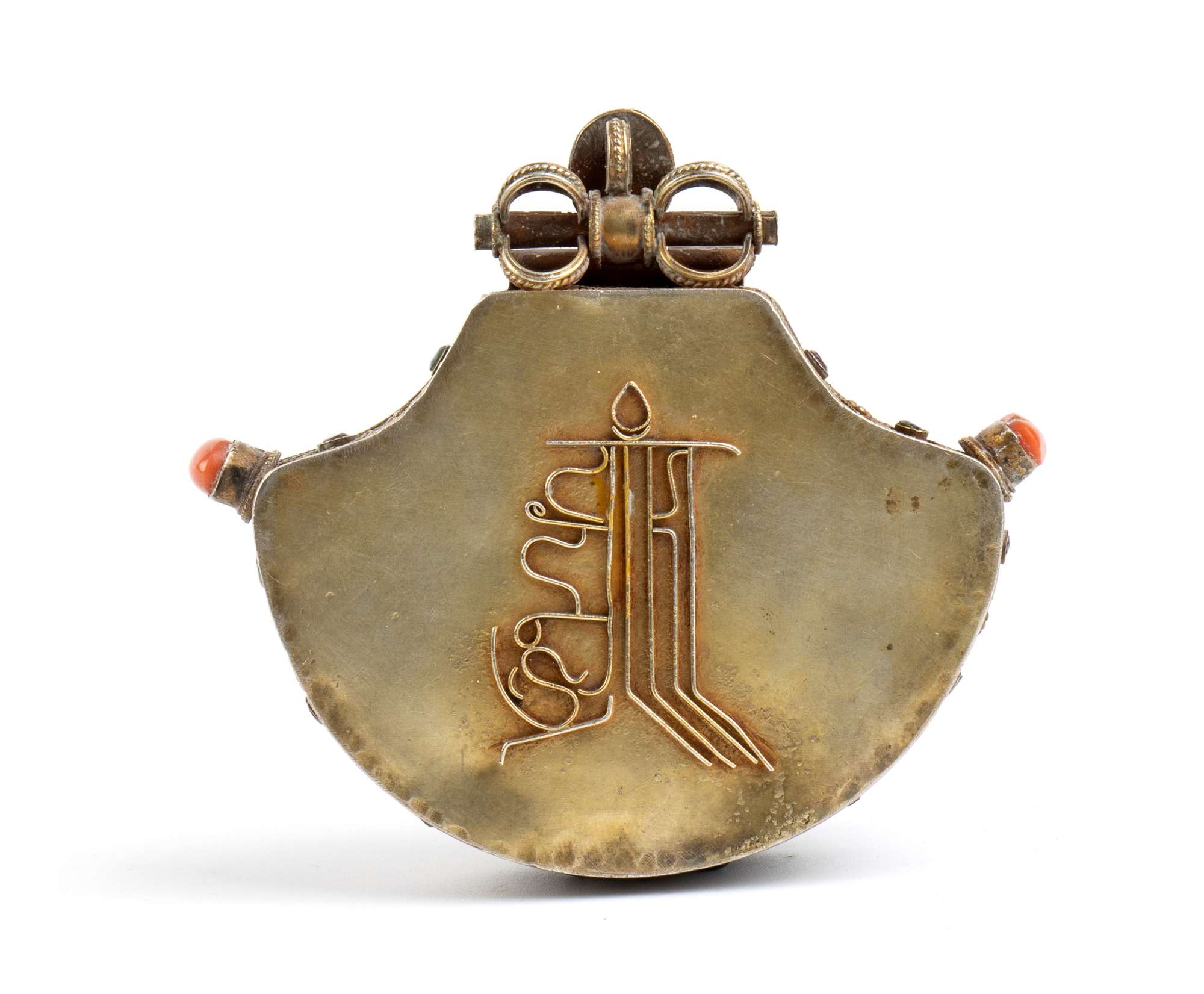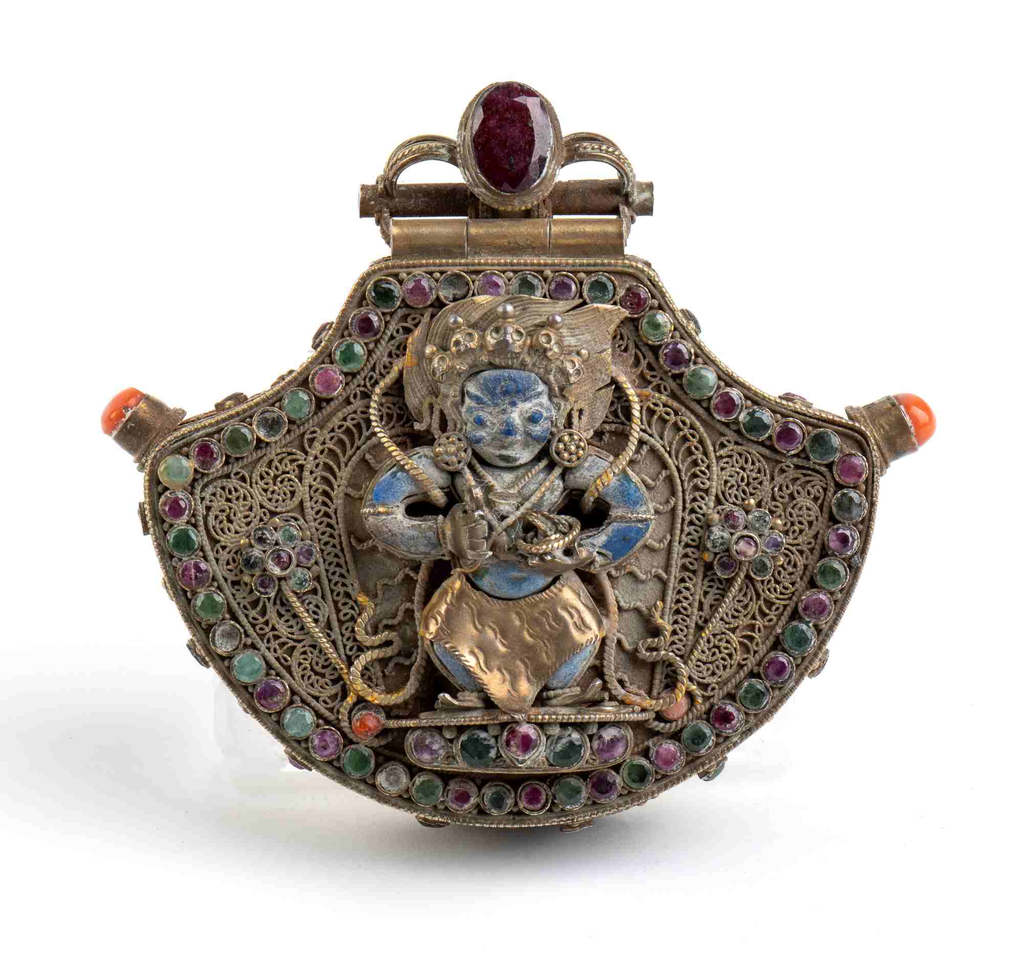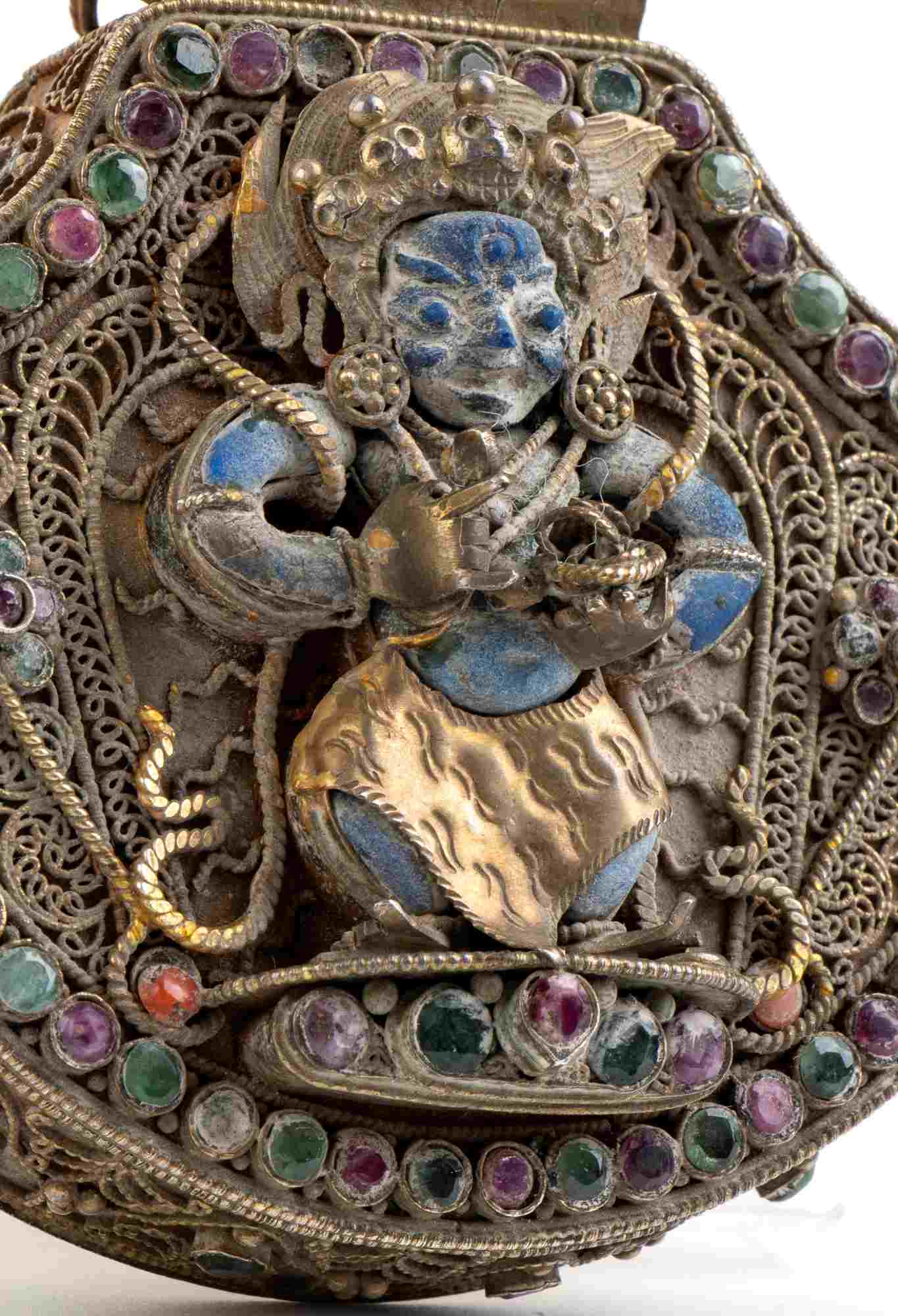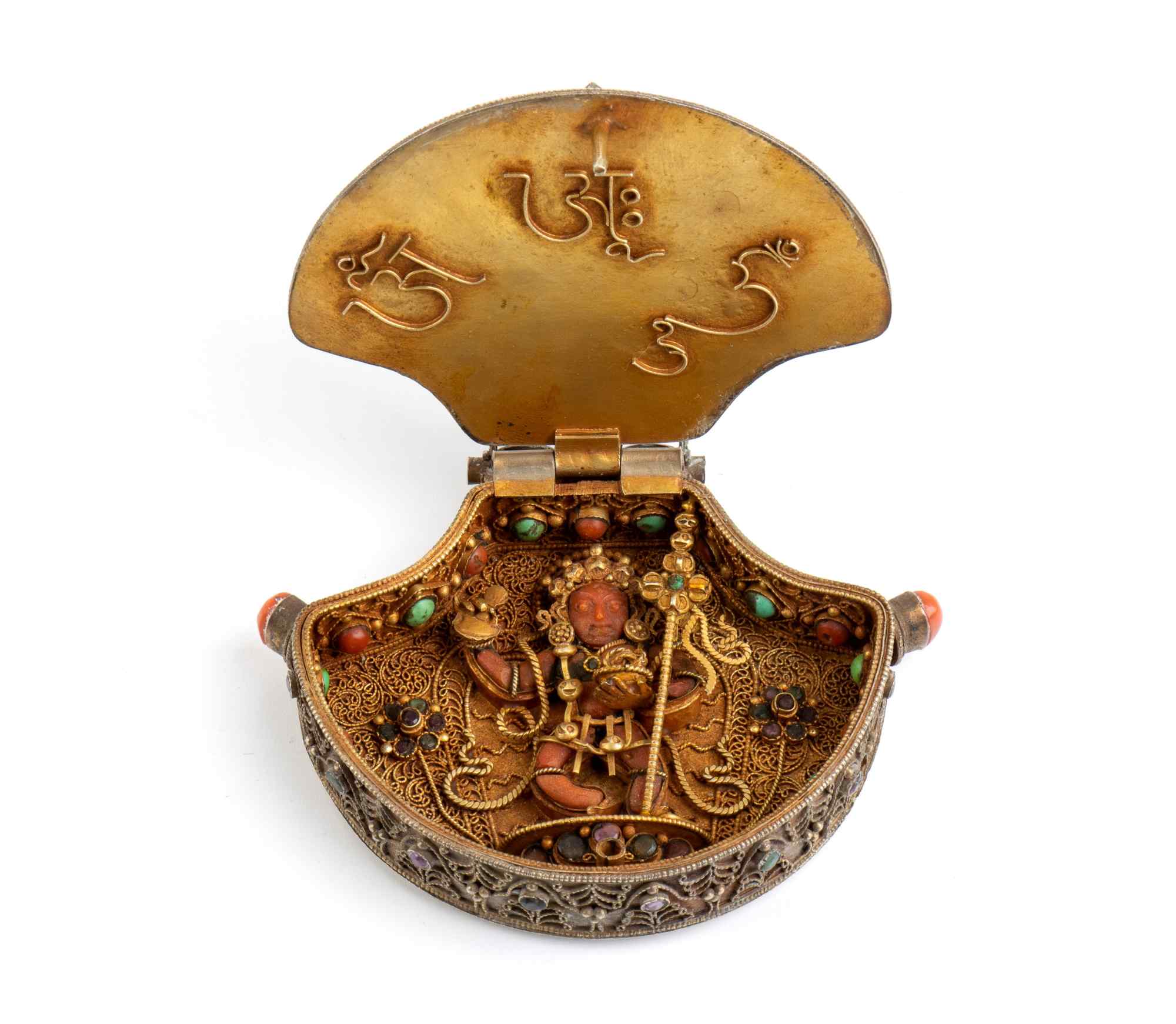 RELIQUIARIO GAU IN ARGENTO DORATO CON INSERTI IN PIETRE DURE E CORALLO