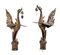 COPPIA DI OCHE MITICHE IN LEGNO INTAGLIATO E INTARSI DI VETRO