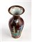 A sezione circolare, presenta sull'esterno una decorazione a smalti policromi di fiori e uccelli su fondo di lacca rosso scuro, marchio al centro della base.