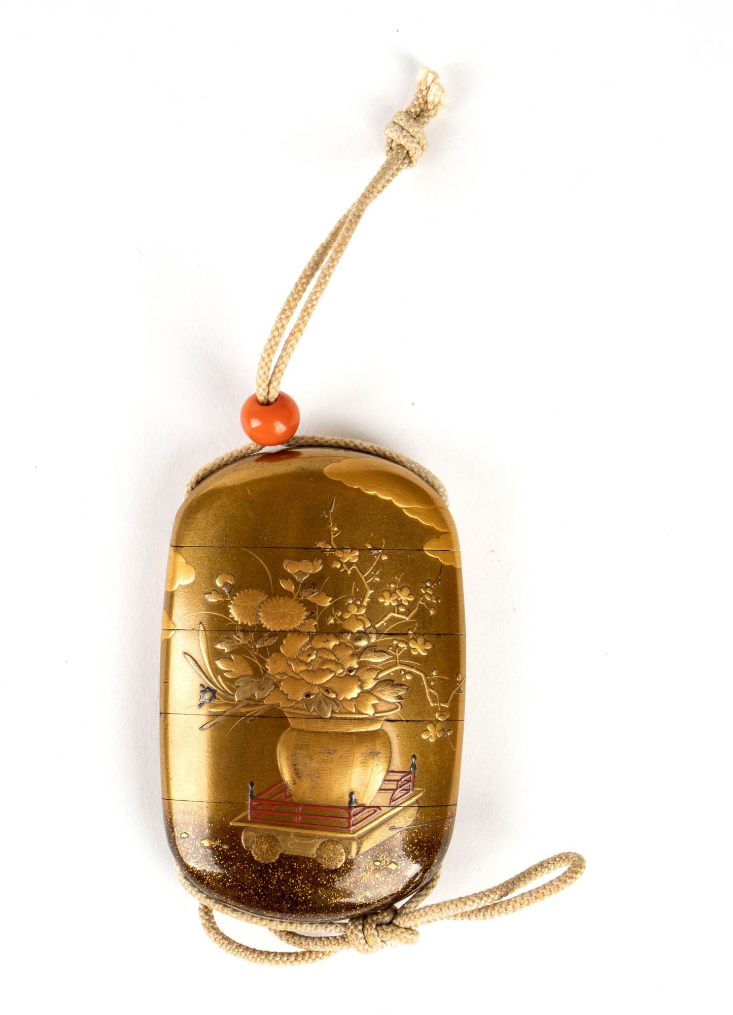 INRŌ A QUATTRO SCOMPARTI IN LEGNO LACCATO E DORATO