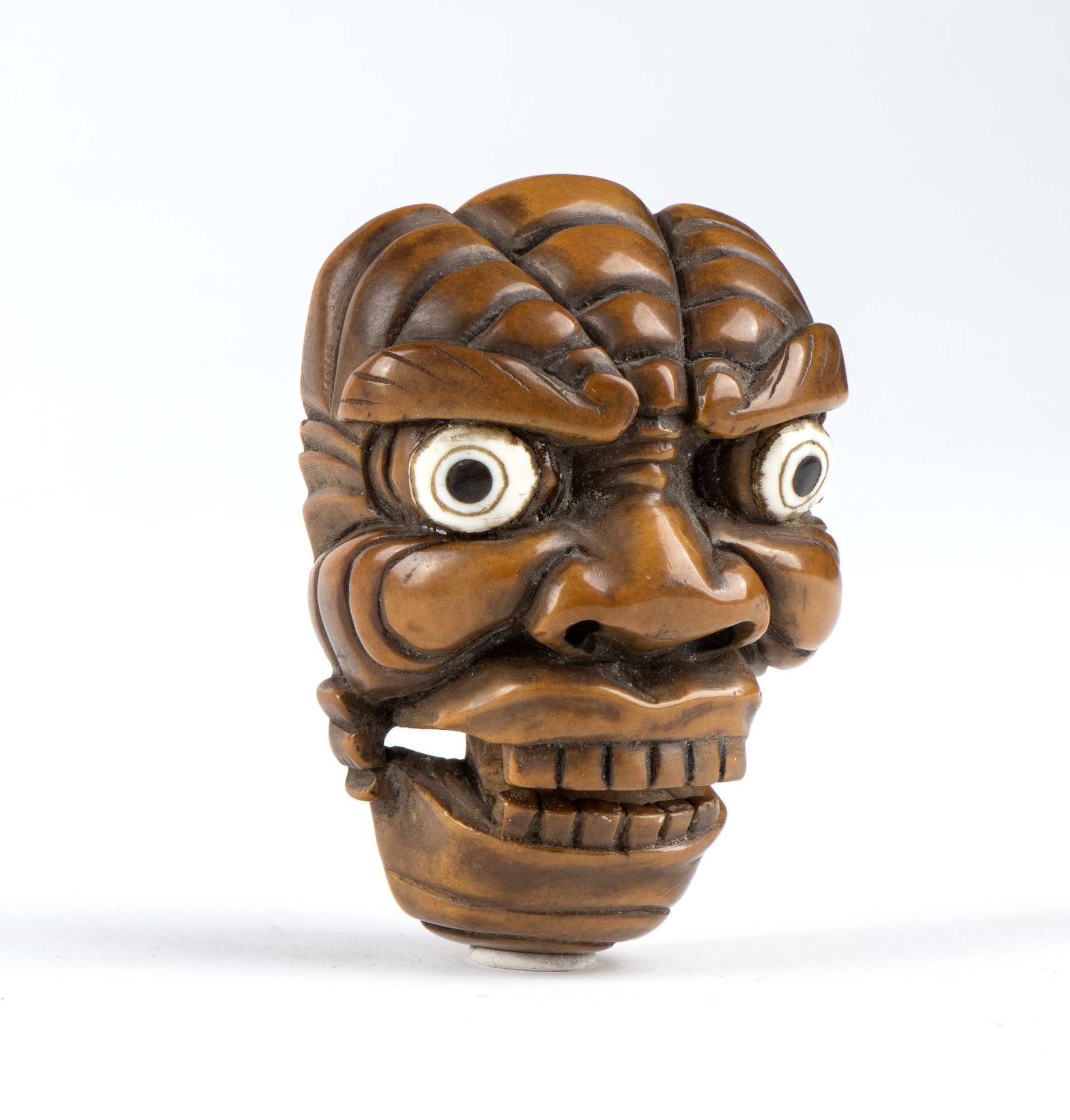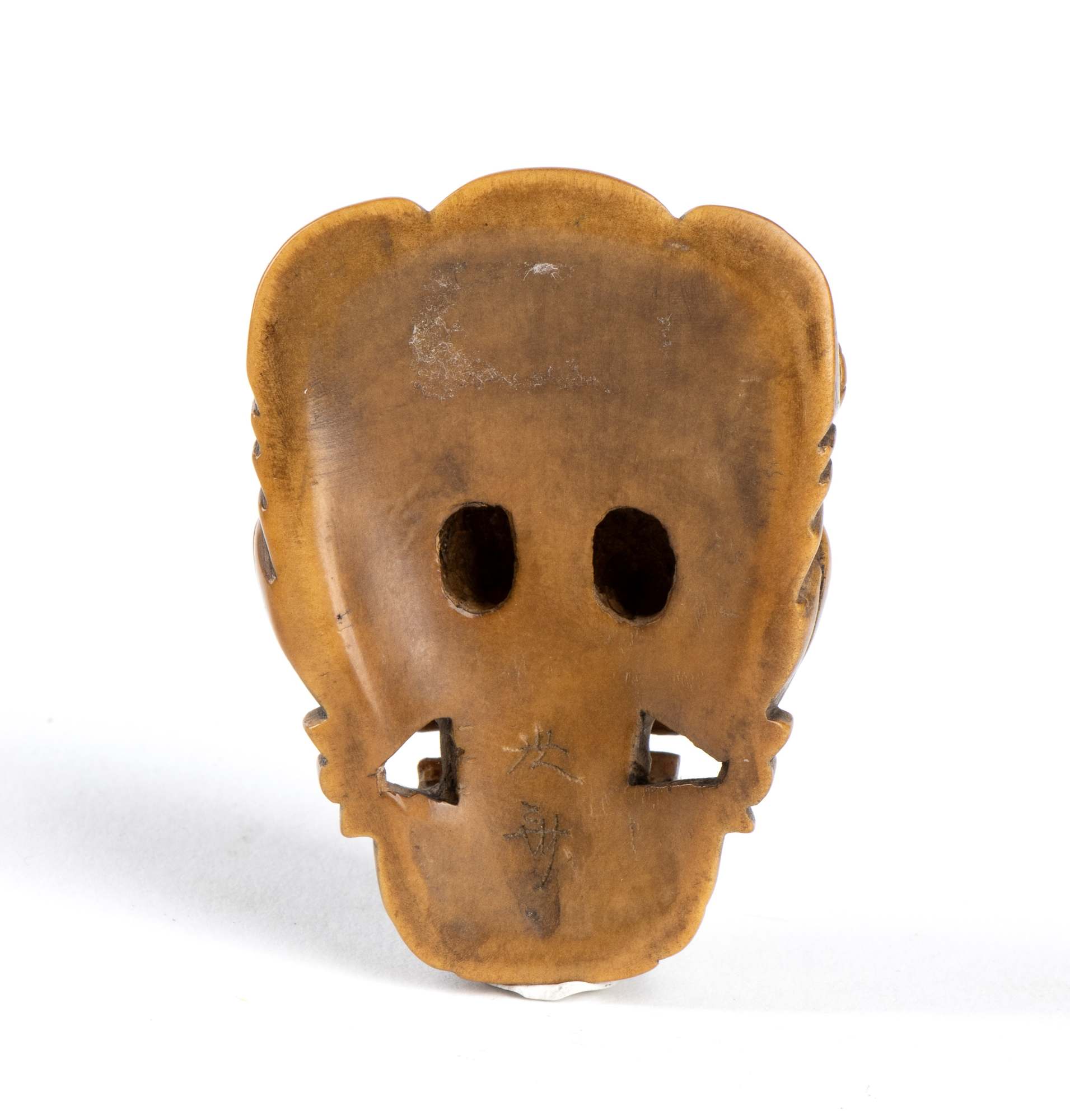 NETSUKE CON MASCHERA IN AVORIO VEGETALE (NOCE DI TAGUA)
