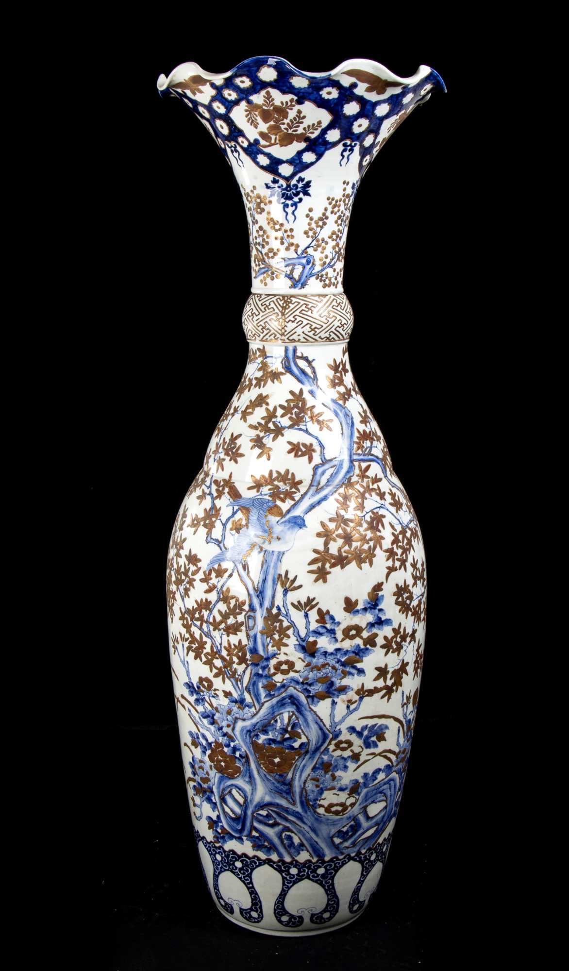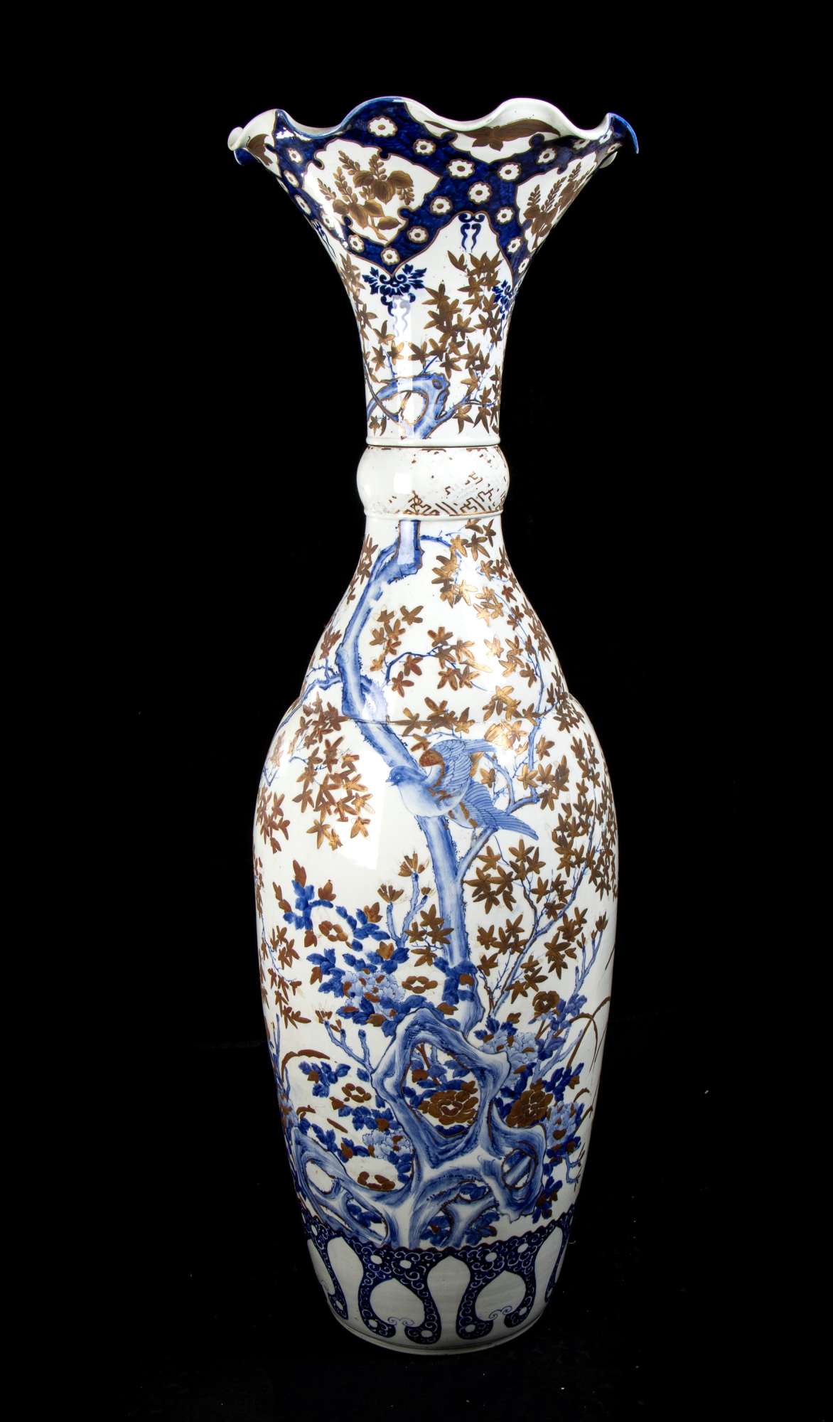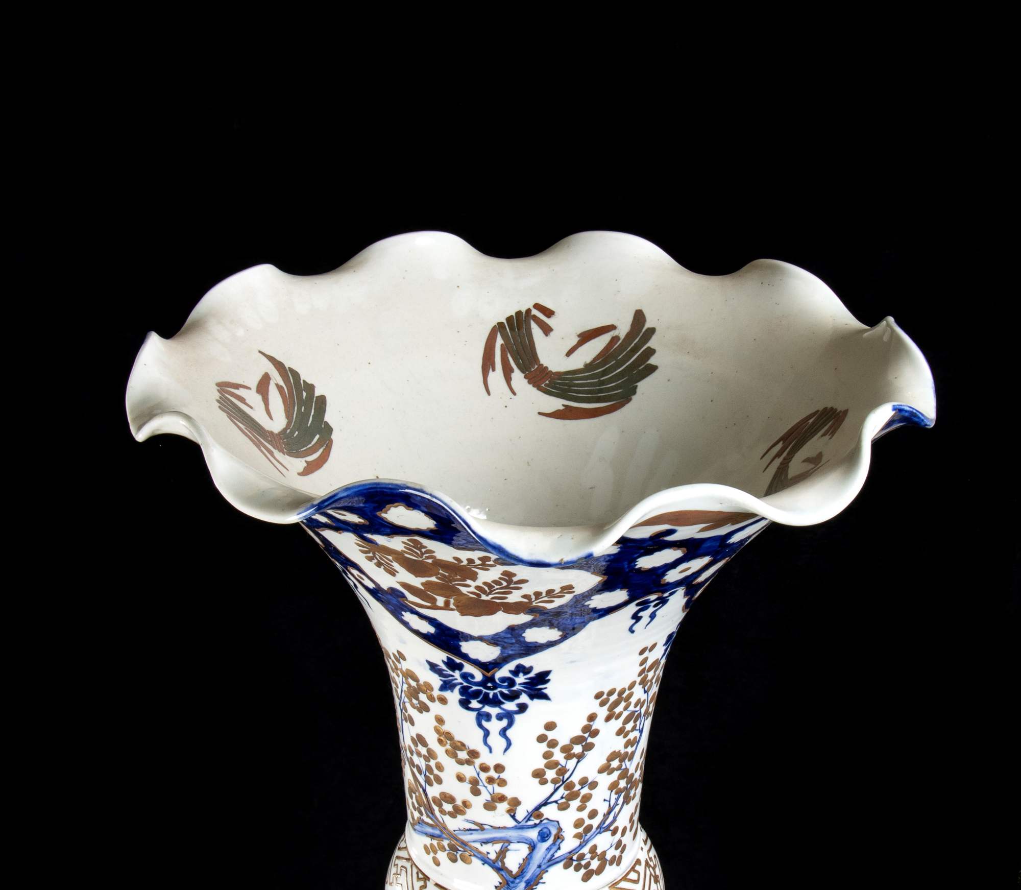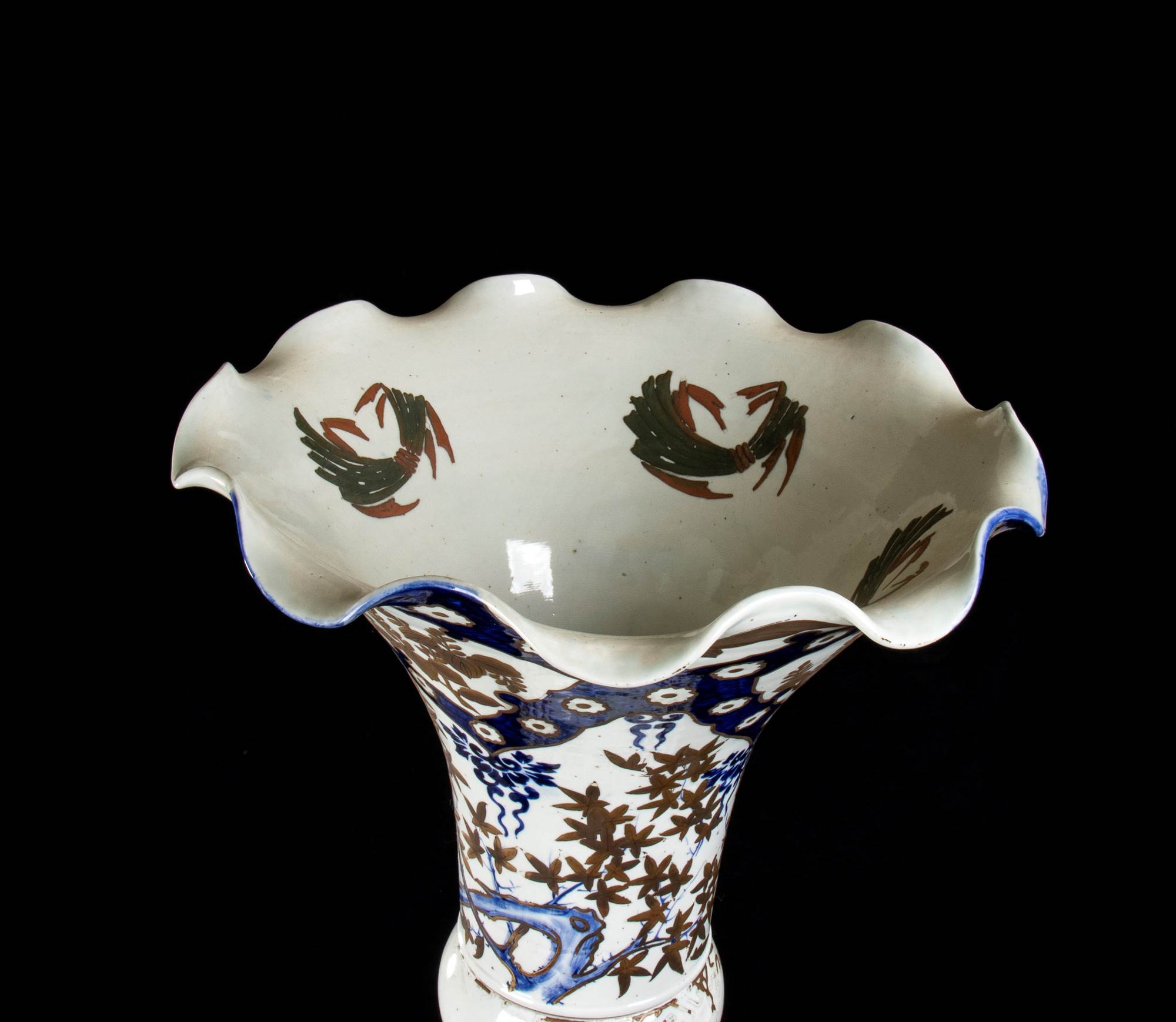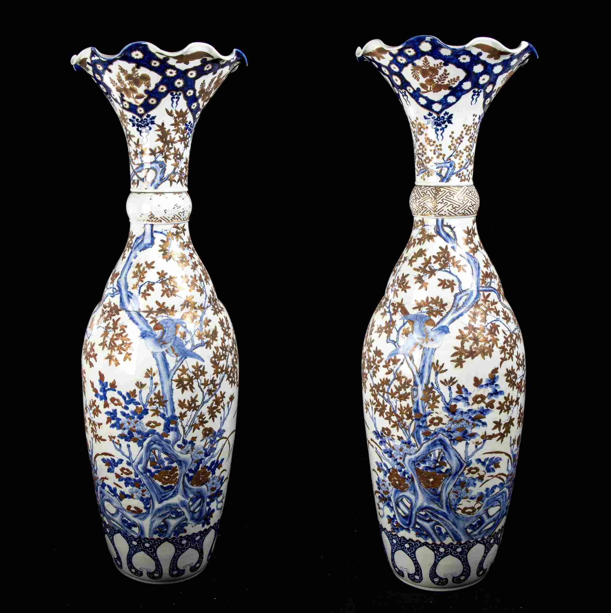 COPPIA DI MONUMENTALI VASI A BALAUSTRO CON DECORO A SMALTI POLICROMI