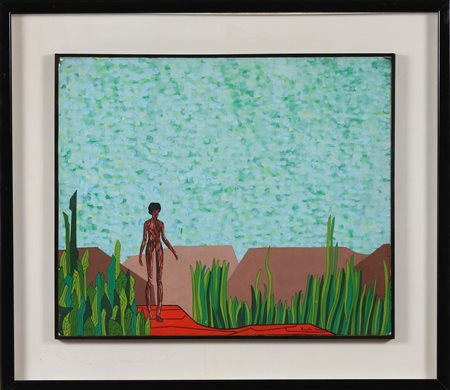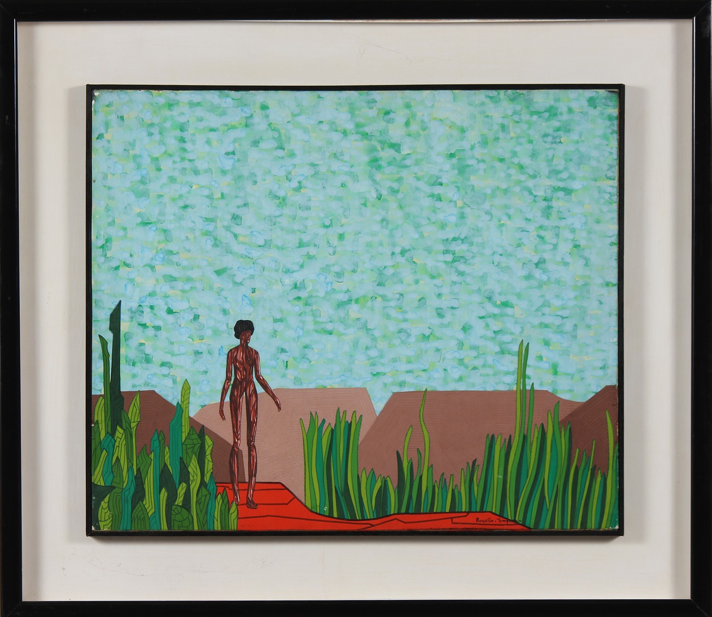ROSSELLO MARIO (1927 - 2000) Senza titolo. Tempera su carta su tela. Cm 55,00 x 46,00. Firma in basso a destra. Autentica dell'artista su fotografia. Cornice presente