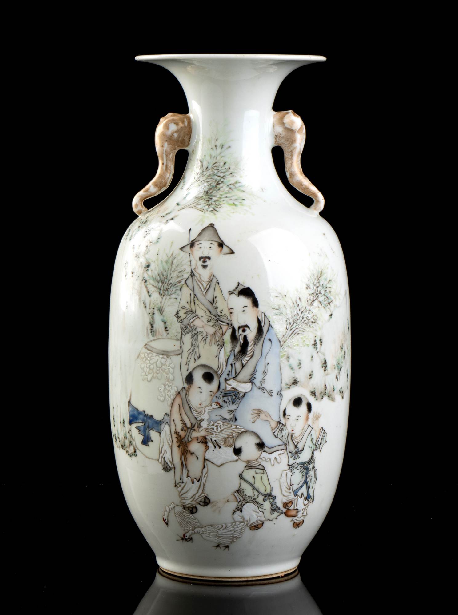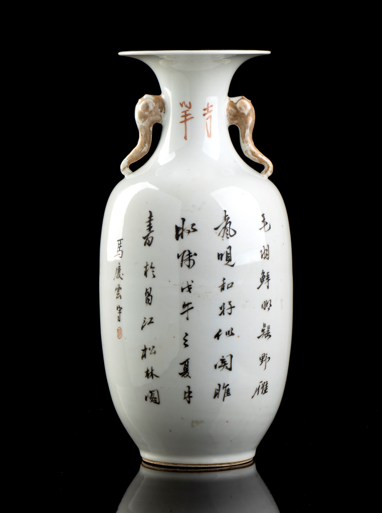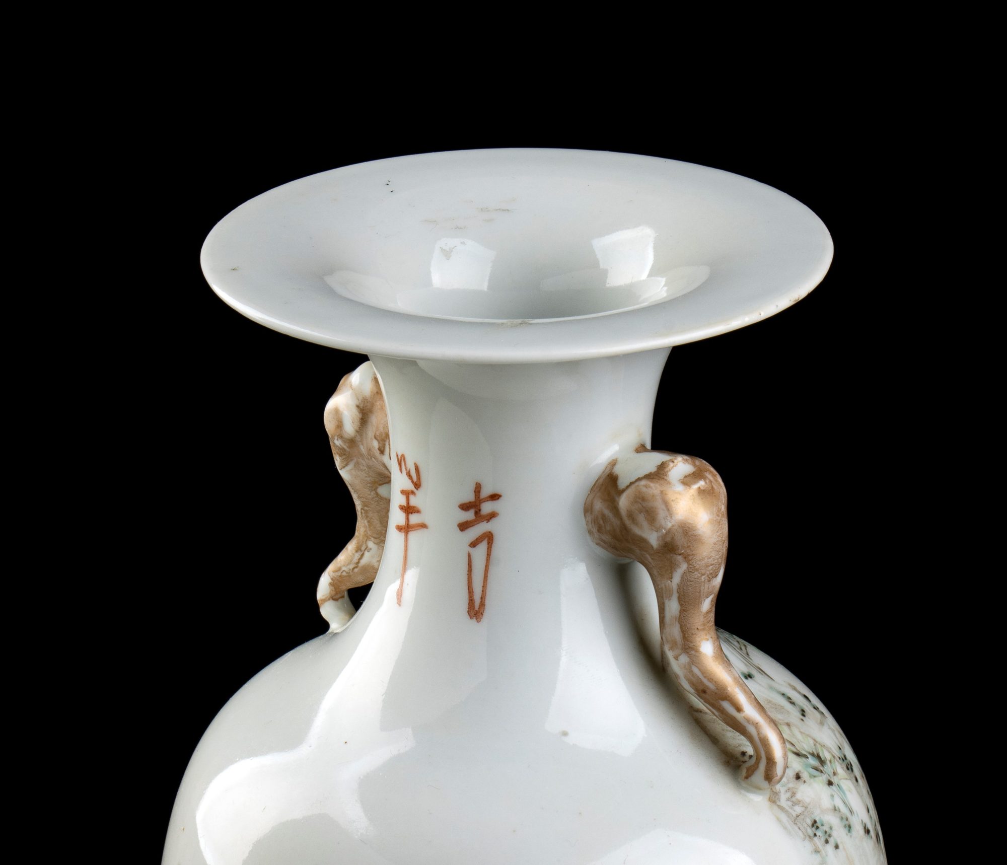 VASO A BALAUSTRO IN PORCELLANA CON DECORO A SMALTI POLICROMI