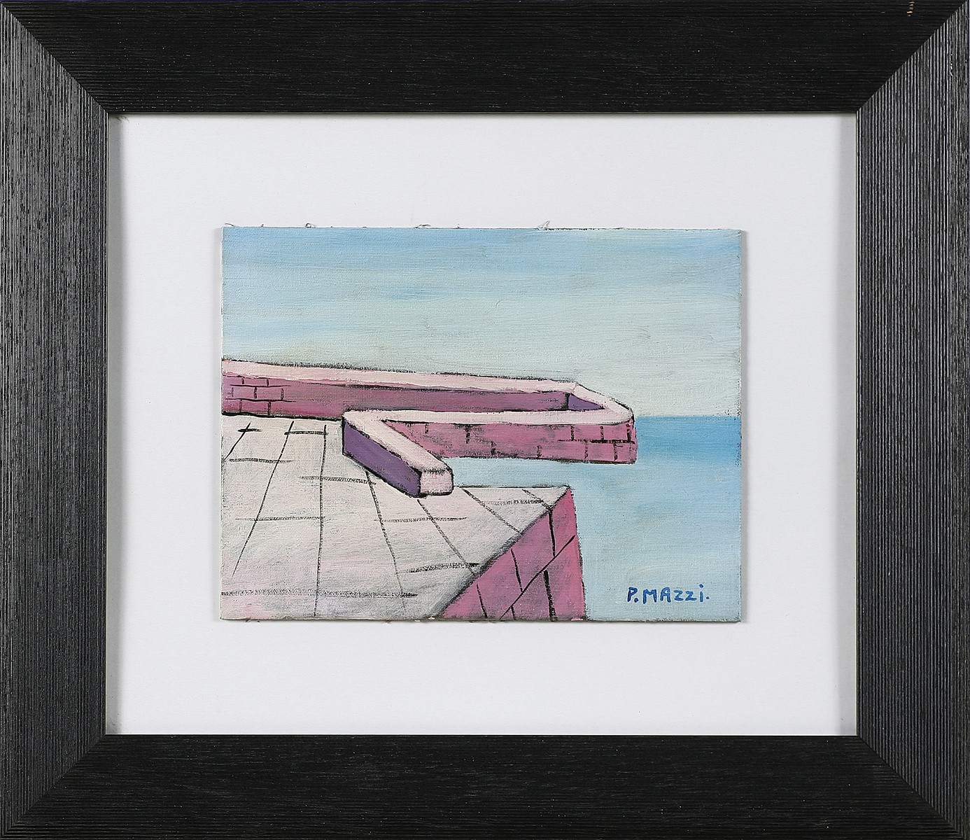 MAZZI PIERO (n. 1938) Senza titolo. Olio su cartone telato. Cm 24,00 x 18,00. Firma in basso a destra. Cornice presente