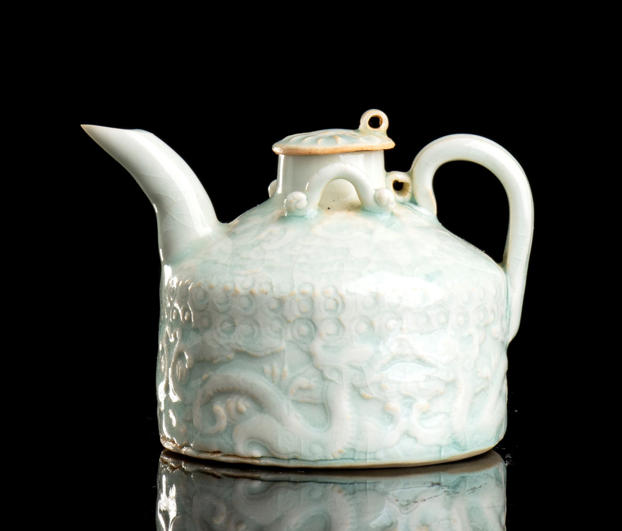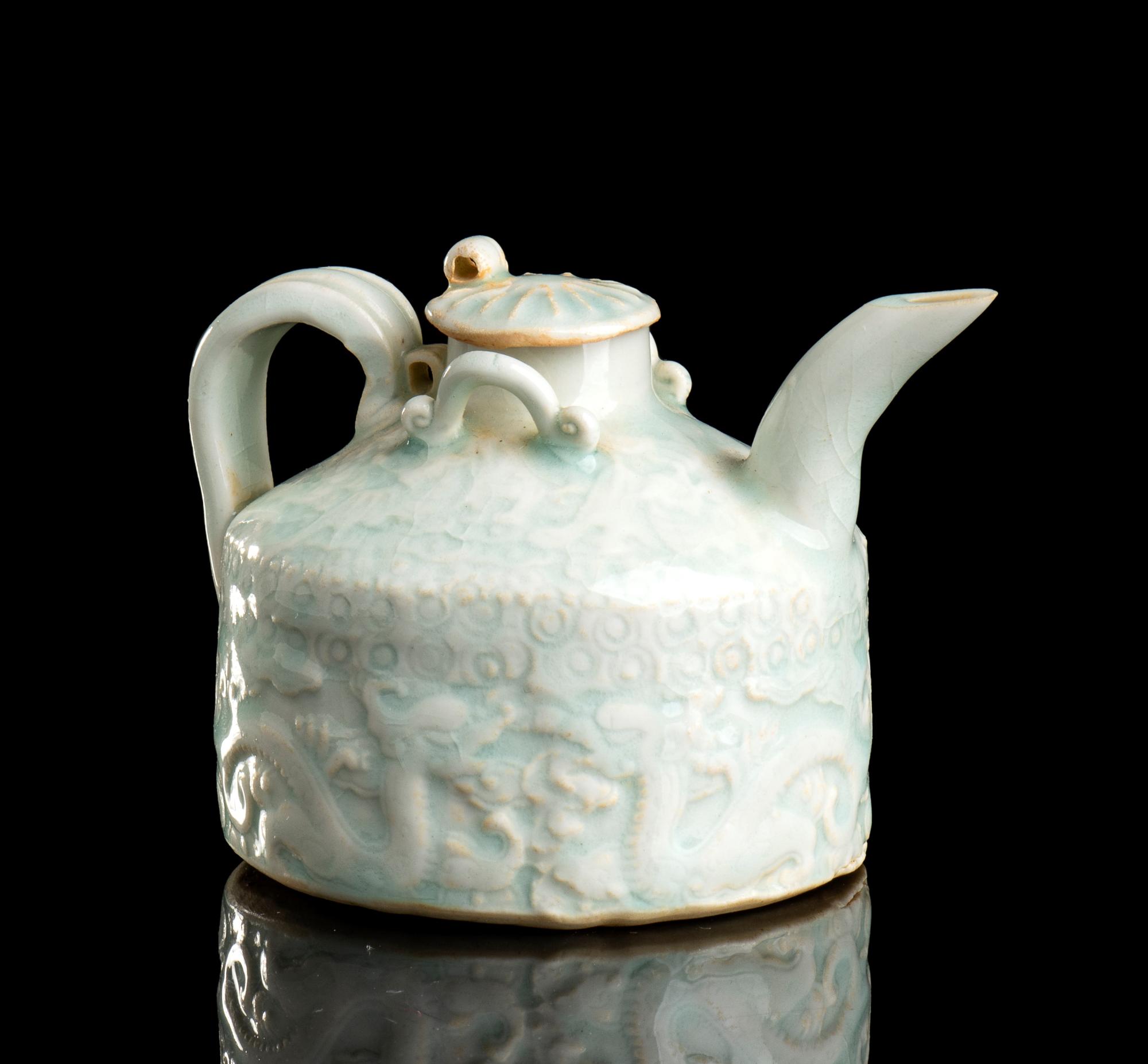 PICCOLO VERSATOIO CON COPERCHIO IN PORCELLANA CON INVETRIATURA QINGBAI