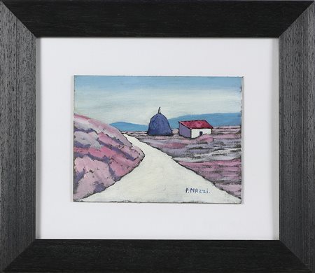 MAZZI PIERO (n. 1938) Senza titolo. Olio su cartone telato. Cm 24,00 x 18,00. Firma in basso a destra. Cornice presente